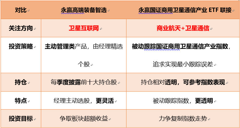 三、永赢高端装备智选与永赢卫星通信ETF联接有何区别?