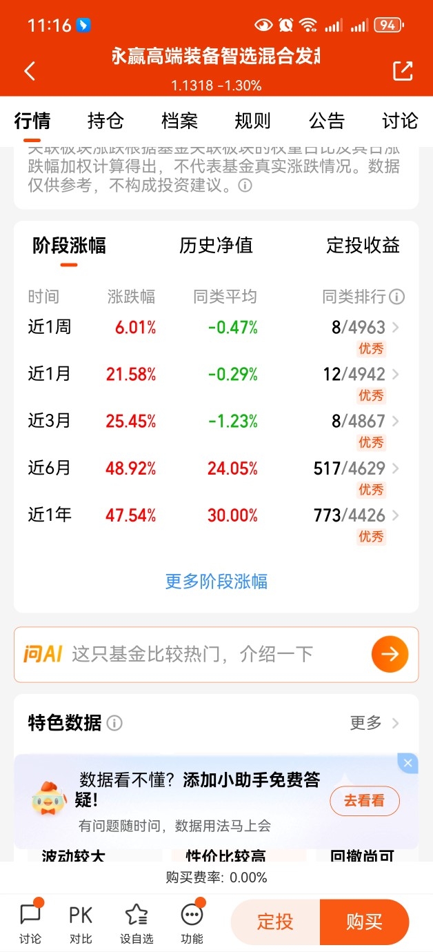 有预感$永赢高端装备智选混合发起C$新一轮上涨模式要开启了,作为全市场首支聚焦卫