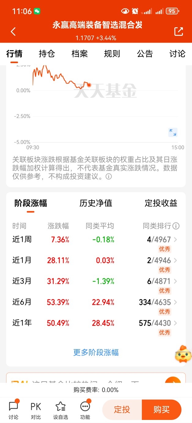 $永赢高端装备智选混合发起C$ 昨天涨幅+3.44%,近一周涨幅+7.36%,近一个月涨幅+28911%,近六个月涨幅+53.39%,弹性不错。看今天这趋势可能又是上涨的一天。该基金的核心优势在于稀缺性与专业性。作为全市场首只聚焦商用航天与卫星通信的基金,其投资组合覆盖从卫星制造到地面设备的全产业链。#2025年 你的投资战绩如何?#