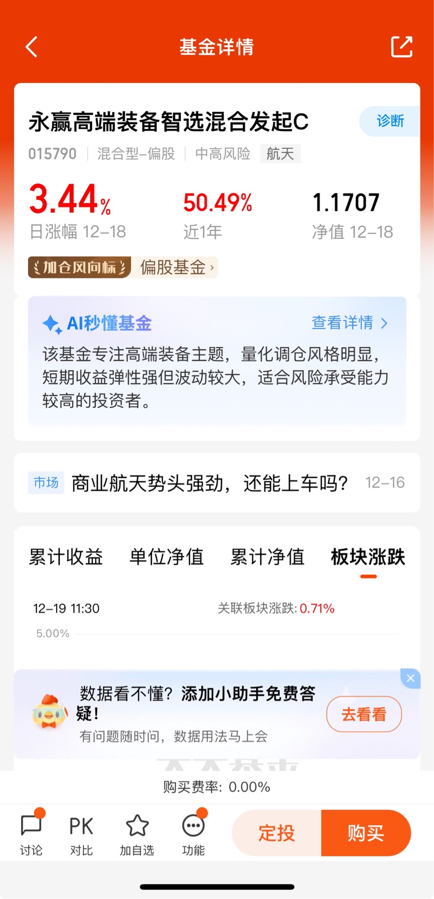 $永赢高端装备智选混合发起C$ 昨天收3.44%,近一个月收28.11%,近6个月收53.39%,表现优秀!它是全市场唯一且也是第一个聚焦卫星互联网的主动型基金。始终坚守卫星互联网核心赛道,持仓方向纯粹且不发生漂移,即便在市场波动的低点时刻,也始终专注于布局相关优质标的,因此能够深度捕捉卫星互联网产业发展带来的红利!