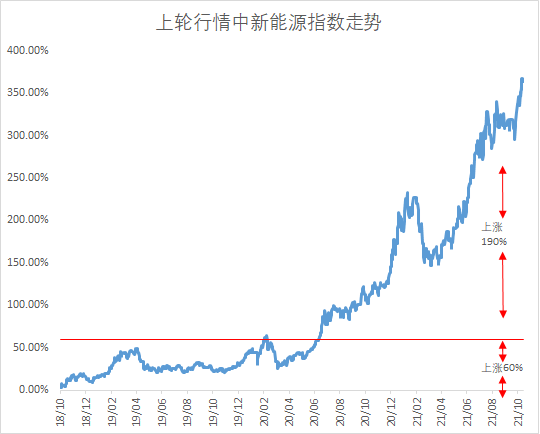 注:数据来源ifind,上轮行情区间选取2018/10/19-2021/11/01,,新能源指数选取中证内地新能源主题指数(000941.CSI)。过往表现不预示未来。