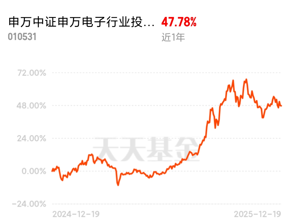 最近挪了一部分到$申万中证申万电子行业投资指数(LOF)C$,这是一只密切跟踪电