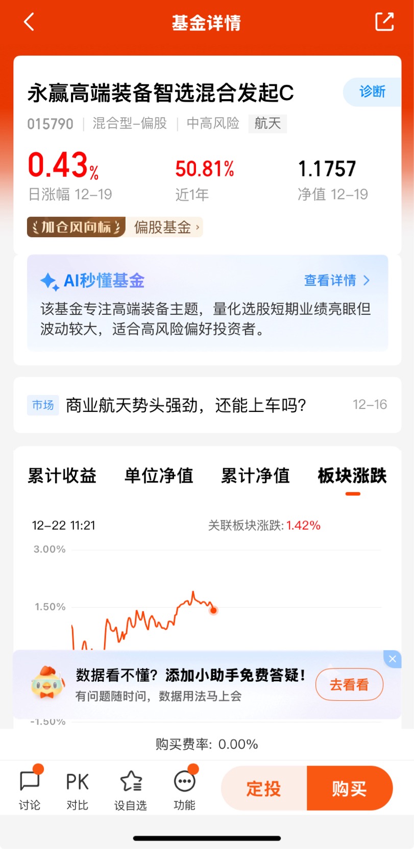 #长征十二甲要来了!商业航天如何掘金?# $永赢高端装备智选混合发起C$ 是全市场唯一且也是第一个聚焦卫星互联网的主动型基金,上一个交易日上涨0.43%,近一周收5%,近一个月收益31.10%,近三个月收益32.85%,近六个月收益56.51%,近1月、3月收益率在同类排名前十;业绩优秀;中国卫星互联网产业已具备全产业链能力,未来需通过技术突破、供应链完善和商业场景拓展,提升全球竞争力。
