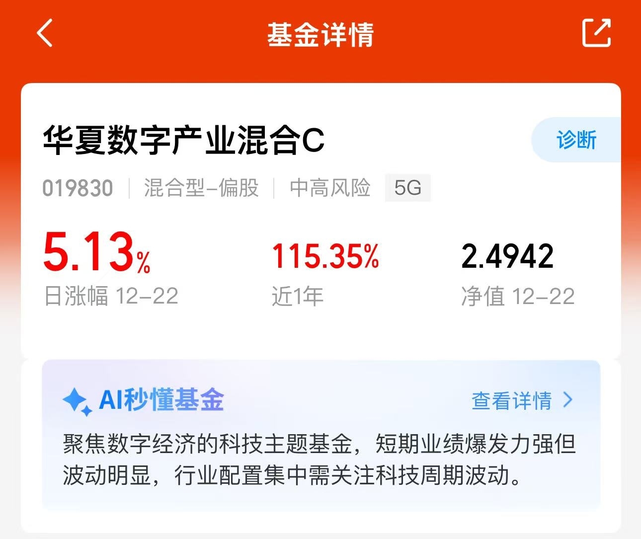 市场回暖,这波算力革命是真的猛,今天$华夏数字产业混合C$真的弹性很足了,直接单