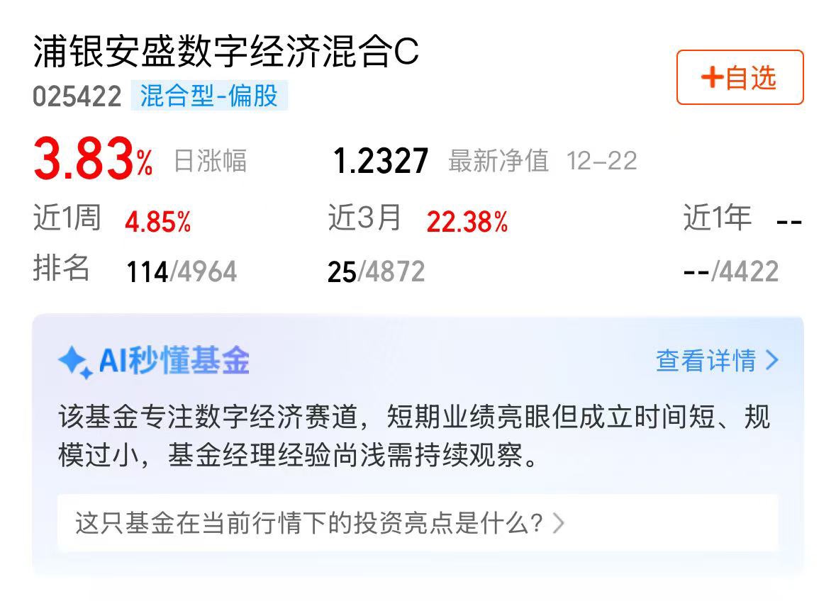 CPO卷王$浦银安盛数字经济混合C$昨天涨了3.83%,新人就是猛,选股很精准,