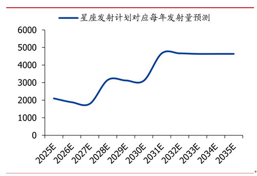 我国星座发射计划对应年化卫星发射量预测(颗)