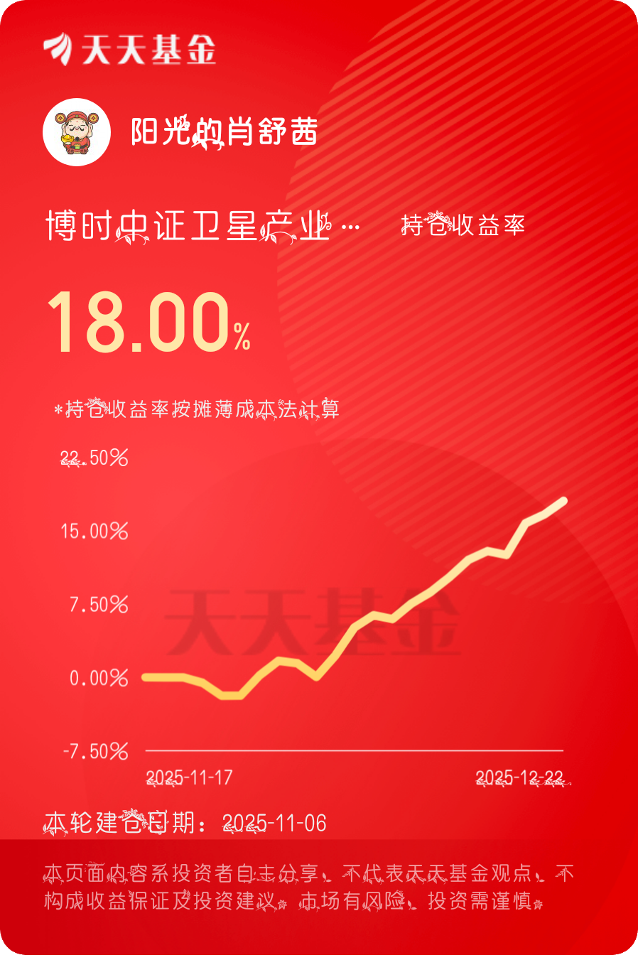 $博时中证卫星产业指数C$ 就是实打实聚焦卫星产业链,从上游的核心元器件到下游的终端应用全都覆盖到了,想精准卡位卫星这个方向,选这只肯定更对味儿#晒收益#