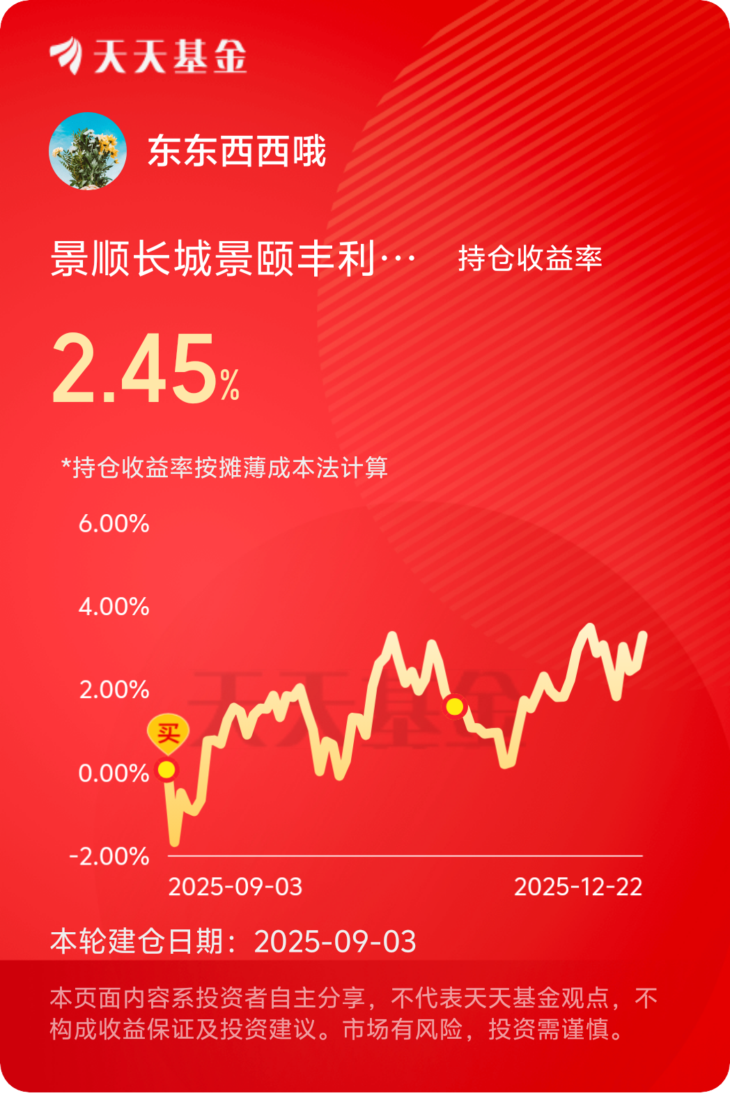 混债还是长线香,近一年有将近24%的业绩,最近也是涨多跌少。$景顺长城景颐丰利债券C$ 还是继续的选择,可以继续入手了#12月基金投资策略#