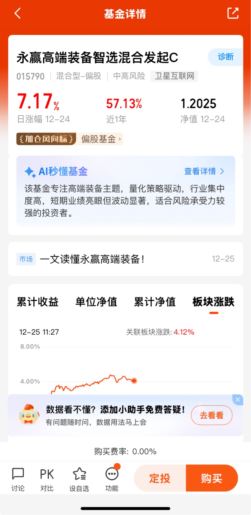 #火箭发射需求或爆发!商业航天赛道狂飙# $永赢高端装备智选混合发起C$ 作为全市场唯一且也是第一个聚焦卫星互联网的商业航天龙头基,昨天暴涨7.17%是妥妥的榜一大哥,近一个月收益30.73%,近三个月收益35.29%,近六个月收益57.17%,近一年收益57.13%,各阶段业绩优秀;卫星互联网在国防、应急通信、低空经济等领域具有不可替代的作用,是产业升级的重要支撑。
