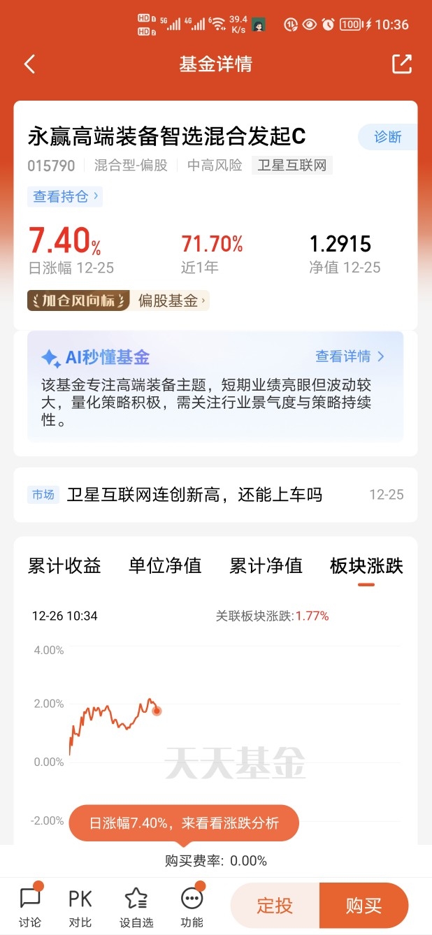 卫星互联网赛道持续活跃,年末A股商业航天板块掀起一波浪潮!$永赢高端装备智选混合发起C$ 连续多天都是榜一产品,优质赛道潜力大,近1年收涨幅超71个点,是全市场唯一一只投资卫星互联网的主动基金,伴随火jian回收、卫星组网技术接连突破,板块表出色,这个是商业航天主题基金中表现最好的,多个阶段都是跑赢同类同类,昨天涨超7个点,今天也是持续拉升。跟着市场大势布局起来,静待花开啦#商业航天赛道爆火:2026年行业或迎质变#