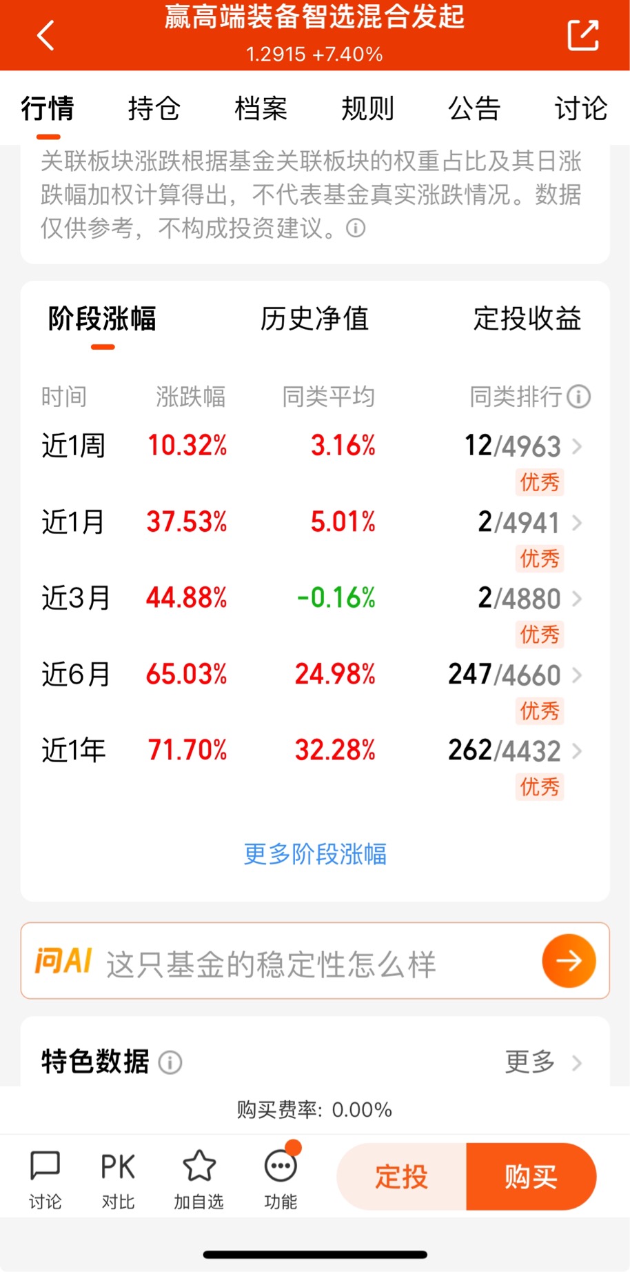 $永赢高端装备智选混合发起C$ 昨天收7.40%,连涨2天,快15%的收益。近一个月收37.53%,近3个月收44.88%同类排名第2,近6个月收65.03%,各个阶段表现优秀!作为全市场首支且唯一全方位聚焦商业航天方向的主动型基金,专注于卫星互联网产业的投资机会,深度布局全产业链的优质标的。该基金在很早之前就布局商业航天,卫星互联网,并且弹性比较大,随着利好的不断催化,该基金也是彻底爆发!