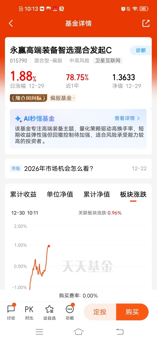 $永赢高端装备智选混合发起C$卫星行情来了,持续反弹,目前估值还在冲高,昨天涨幅