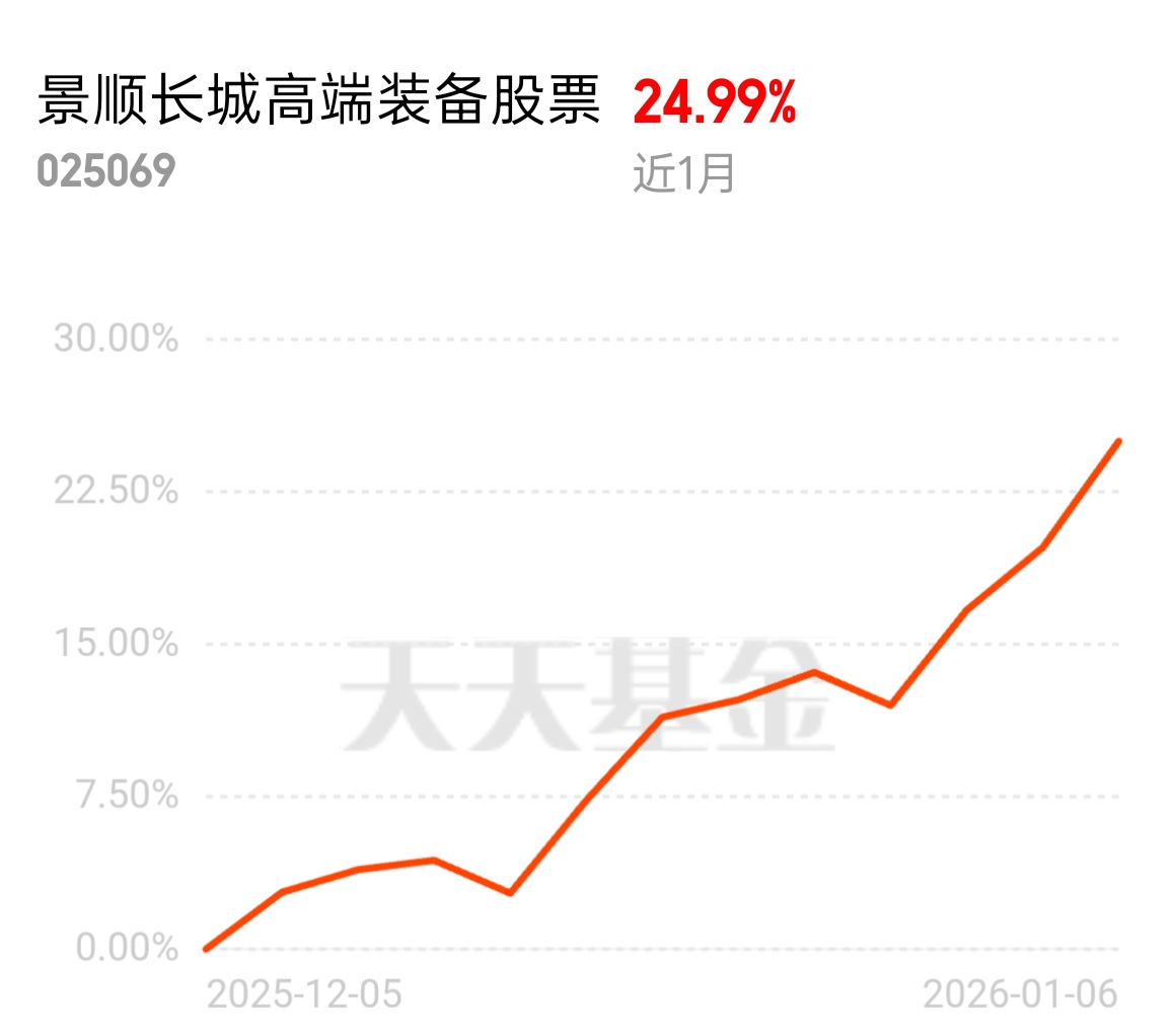 商业航天板块近期持续火热,产业链布局不断完善,景顺长城高端装备股票近 1 月 24.99% 表现不俗。昨天涨幅甩开同类,航天装备、军工等高端制造全涵盖,近一月排名靠前,长期趋势没问题,今天估值回调就是加仓良机。$景顺长城高端装备股票$
