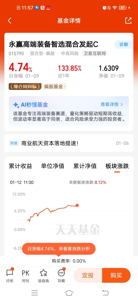 $永赢高端装备智选混合发起C$ 赛道好弹性足,当日大涨超8个多点%,近一个月涨幅54.79%,近半年涨幅106.50%,近一年涨幅133.85%,同类排名靠前,航空航天的主线持续发酵,国内新增20万颗巨型星座申请,布局更有性价比,主投卫星互联网,持仓纯粹,板块近期利好不断!#GEO概念连续走强 AI应用领涨市场#