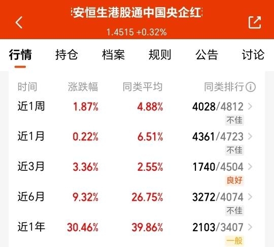 这只港股基藏不住了!$华安恒生港股通中国央企红利ETF发起式联接C$ 近 1 年 30.46%,成立 44.96% 收益,高股息抗波动,低估值性价比拉满