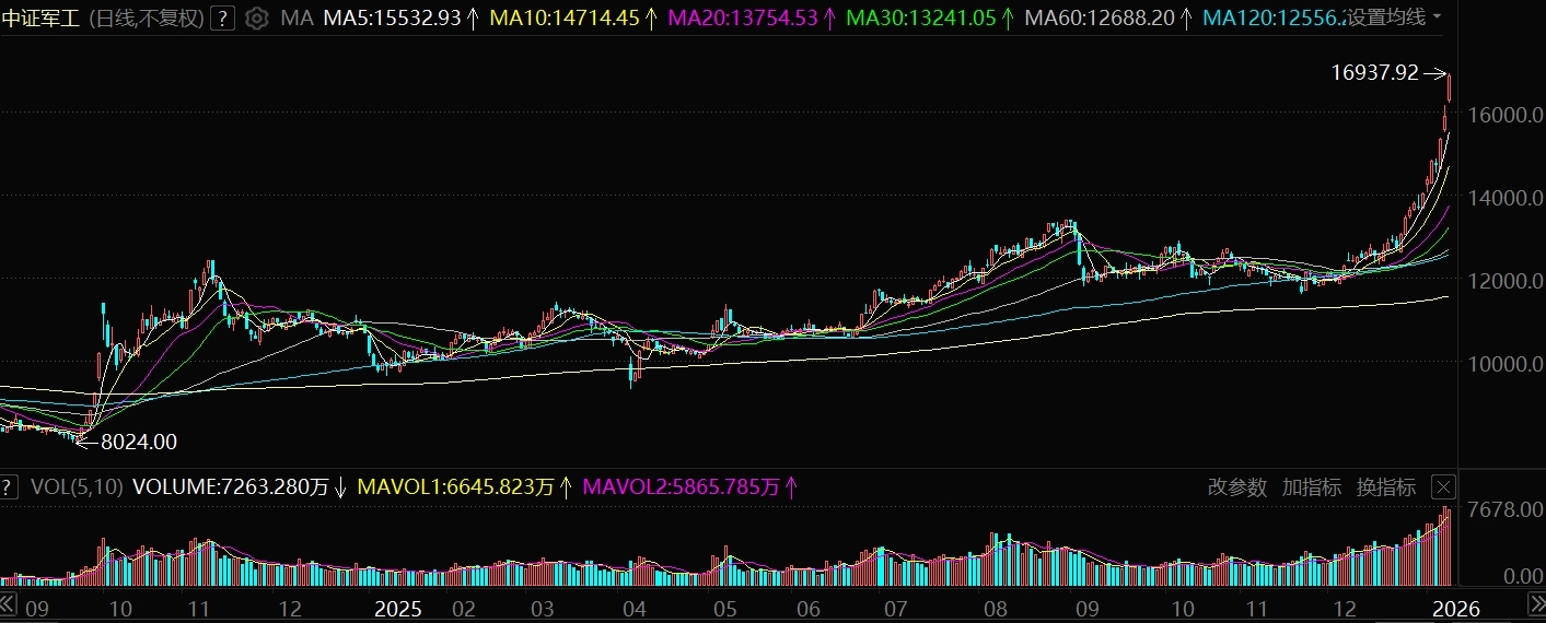 军工赶上商业航天的热潮,今年六个交易日涨了20%。