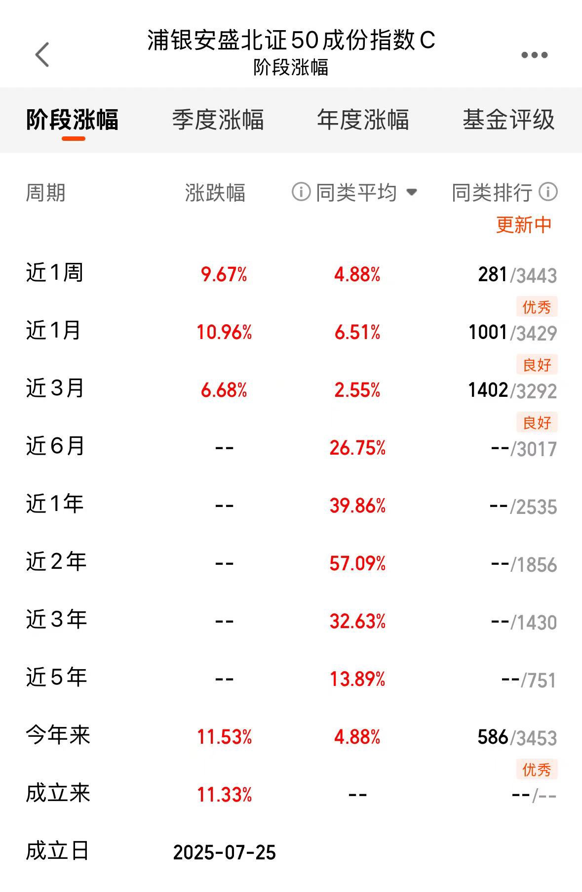 今天大涨5.73%的浦银北证50大涨能跟上,跟踪误差小,成立以来跑赢指数有超额,