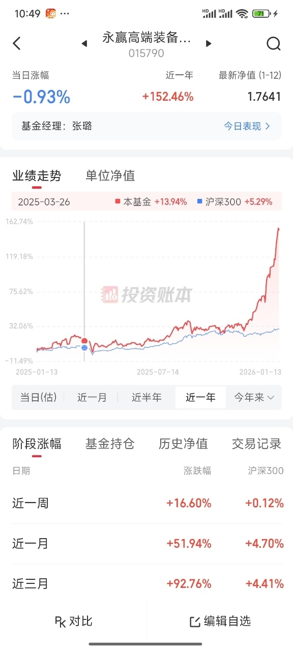 A股行情彻底被点燃了,还没上车的抓紧上车了,今天趁回调上车永赢高端装备015790,这只是主投卫星互联网,近六个月收益率124.33%,近一年收益率157.83%,持仓的中国卫通,海格通信等等都是好股票,期待后面行情多往上冲冲。