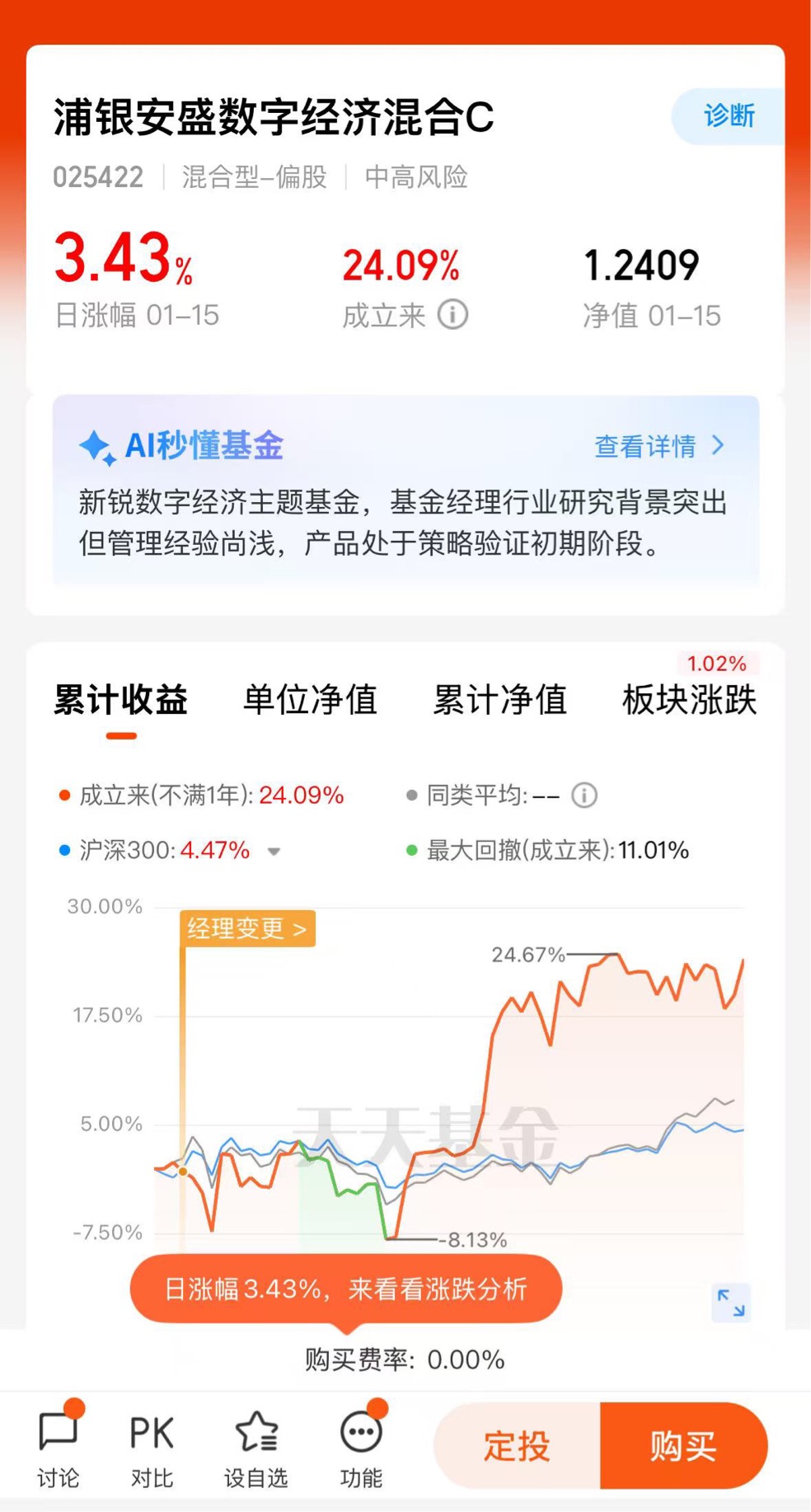 #2025超额关键词# CPO长期趋势在线,浦银安盛数字经济新基涨3.43%,现在布局正合适$浦银安盛数字经济混合C$