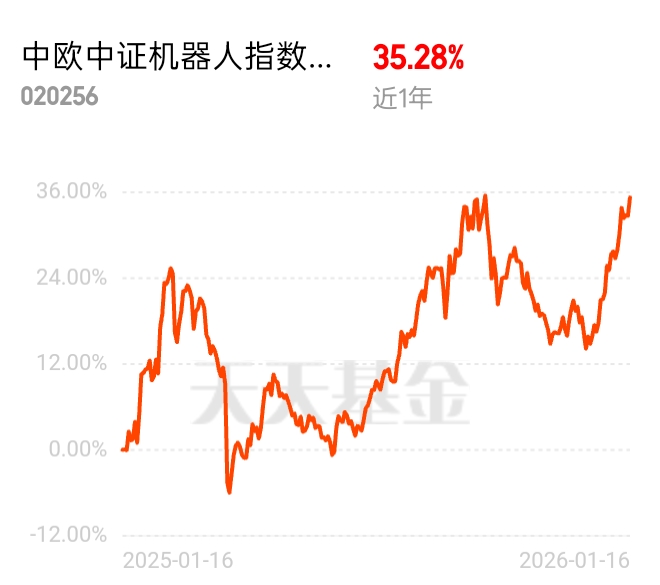 政策支持 + 技术突破 + 资本加持,机器人万亿赛道正式开启,商业化进程超预期。中欧中证机器人指数发起 C 近 1 年收益 35.28%,聚焦细分龙头,现在板块成交额占比处历史低位,比追高更稳妥,值得布局。