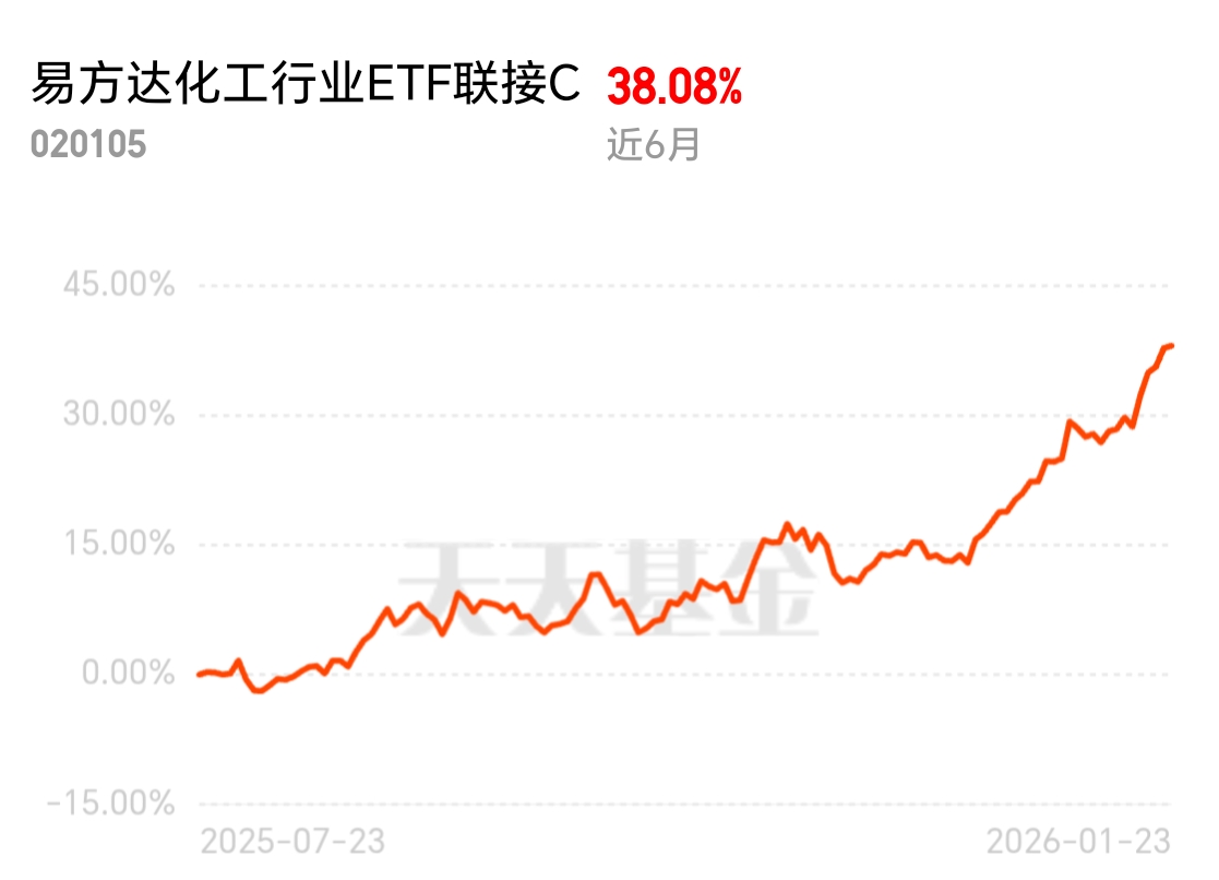 近期化工品涨价潮来袭,行业盈利空间持续扩大,板块热度居高不下,易方达化工行业 ETF 联接 C 近 6 月拿下 38.08% 收益,精准捕捉行业机会,投资化工选它准没错