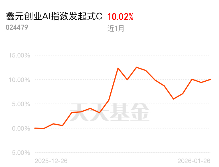 $鑫元创业AI指数发起式C$近1月涨10.02%、近3月涨21.98%,创业板A