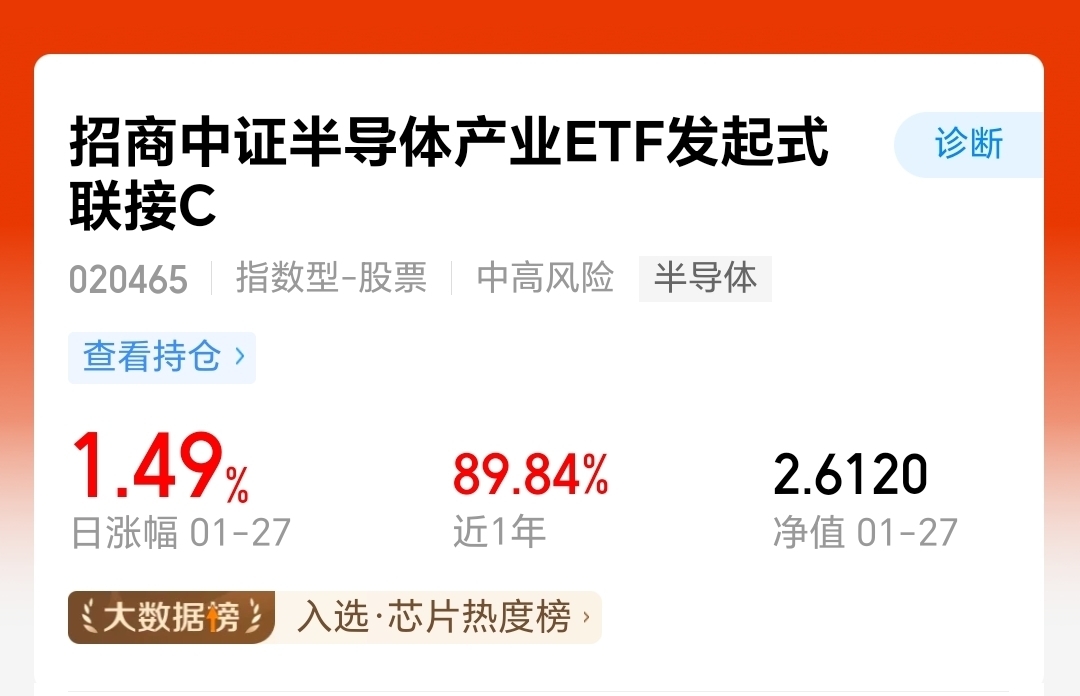 $招商中证半导体产业ETF发起式联接C$上涨1.49%。