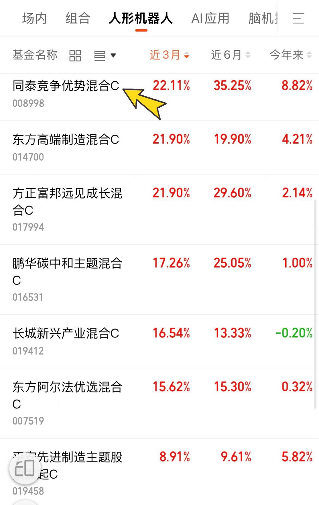 看着春晚机器人的彩排视频,我想起了几年前布局的 AI 基金。现在人形机器人到了类似的拐点。同泰竞争优势混合 A 深挖竞争优势企业同泰基金,股票仓位高,进攻性强。它的近 3 个月波动 22.24%,适合能承受波动的投资者。我准备在除夕前完成加仓。