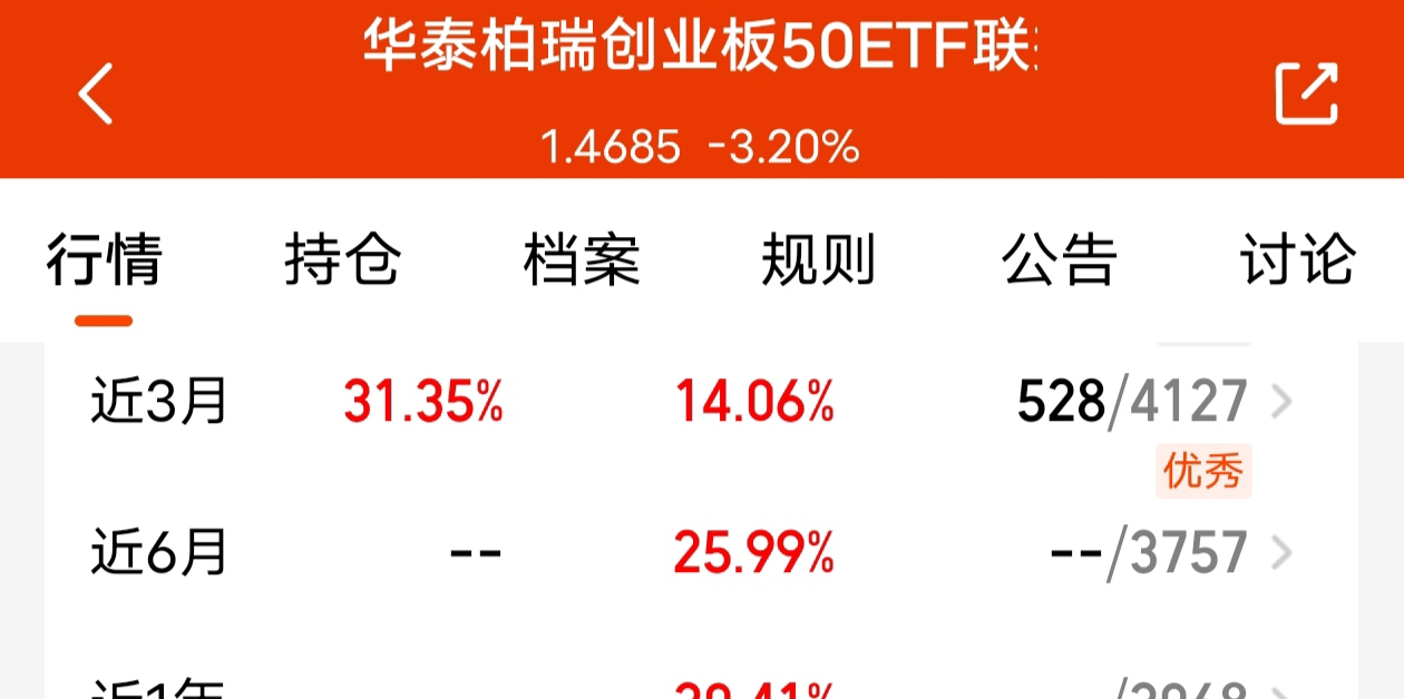 看了眼持仓,$华泰柏瑞创业板50ETF联接C$今天估值涨3.26%,近三个月31