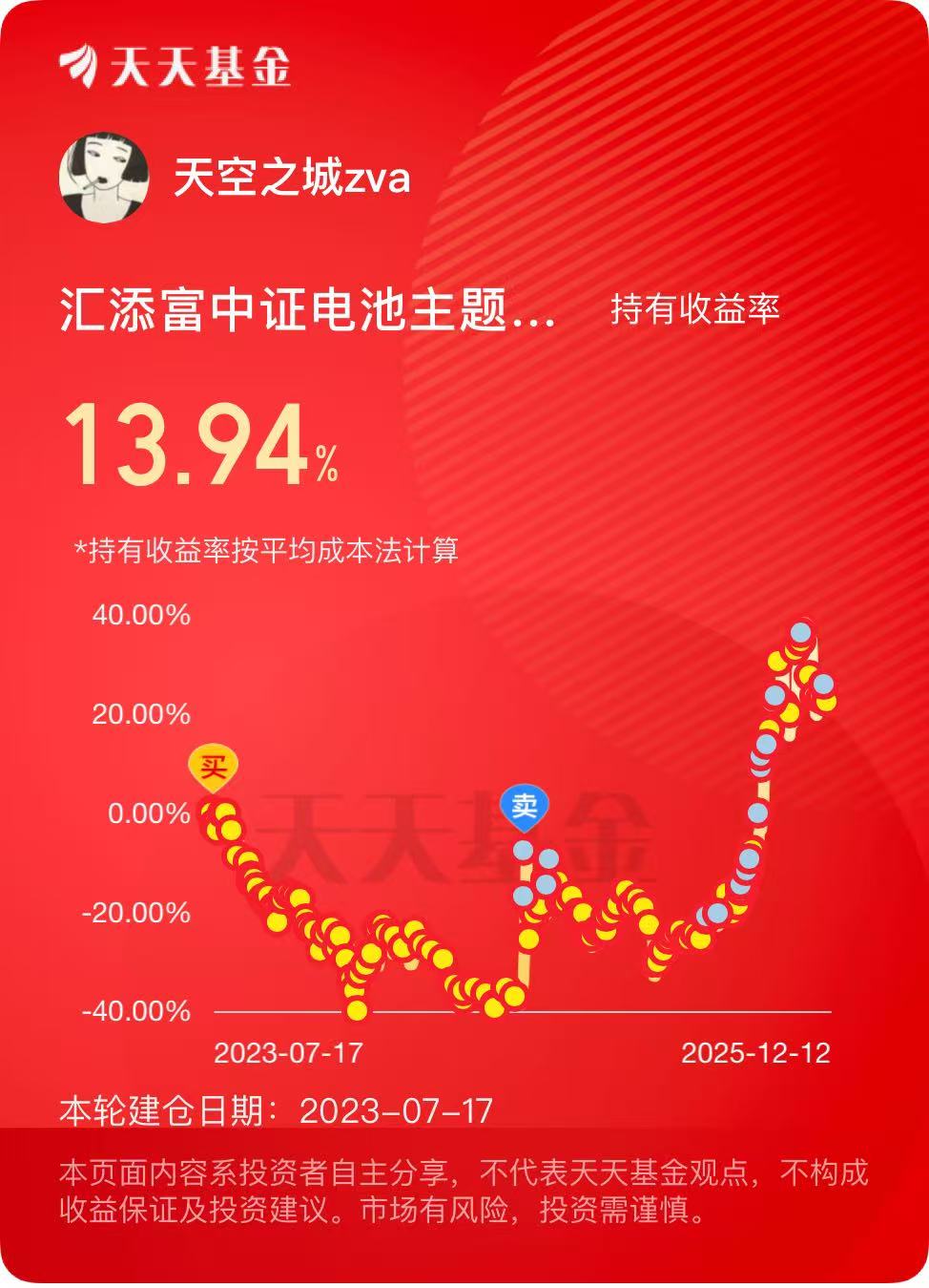 今天先加仓 一次$汇添富中证电池主题ETF发起式联接D(OTCFUND|015808)$