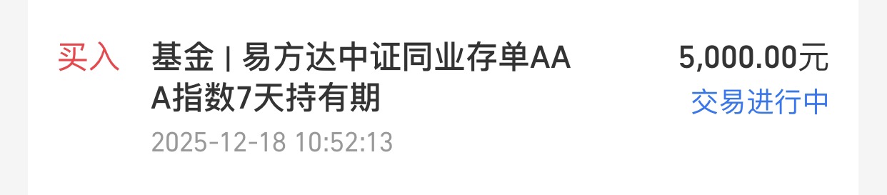 $易方达中证同业存单AAA指数7天持有$加5k。临近年底,市场的波动较为频繁,今