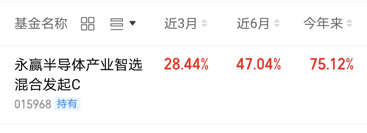 $永赢半导体产业智选混合发起C$ 主要关注半导体细分赛道的光刻机领域。最近三个月涨超28个点,最近六个月涨超47个点。今年以来涨幅超过75个点。