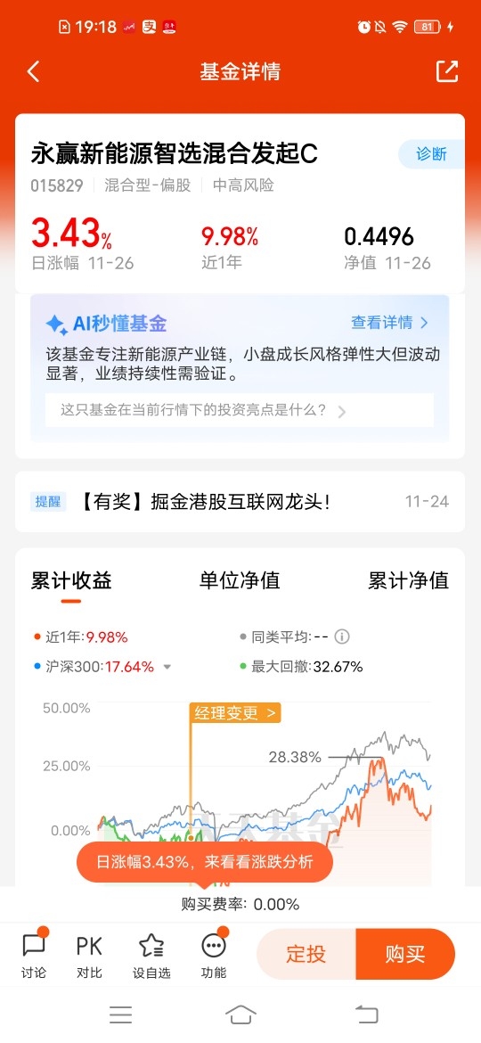 $永赢新能源智选混合发起C$ 主打新能车+机器人,今晚更新涨幅3.43%,近半年涨幅22.44%#大科技普涨 CPO又冲了#