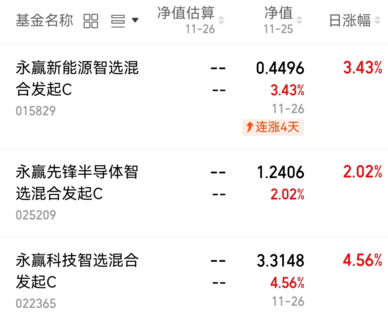 永赢智选家族今日净值播报,大家快来看看有没有你们心仪的产品:$永赢新能源智选混合