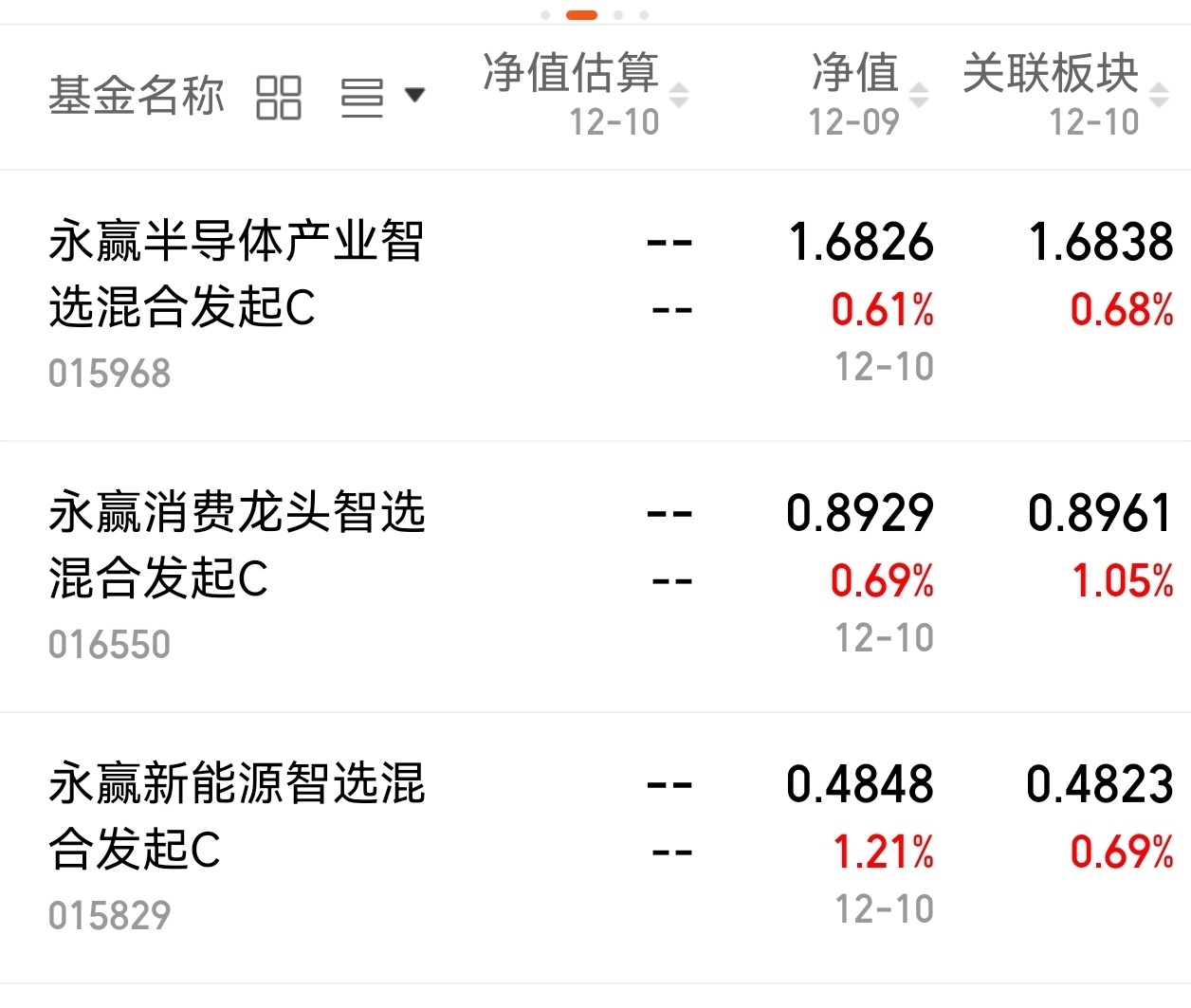 永赢智选家族今日净值播报来啦!让我们一起来看看我关注的几只今天的表现:$永赢半导