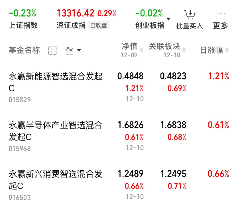 $永赢新能源智选混合发起C$ :聚焦新能源车和机器人赛道,今天逆市上涨1.21%,近6个月收益37.30%;