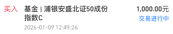我加仓$浦银安盛北证50成份指数C(OTCFUND|024744)$ 1000元,跟踪的北证50指数今天盘中又一度涨超2.5%,今天再收涨就5连涨了,而且已经成功突破并站稳半年线,后面这里回踩不破我觉得可以看做是加仓机会,趁这会看涨幅回落至0.6%左右,我要加仓一下。