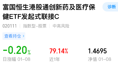 我加仓$富国恒生港股通创新药及医疗保健ETF发起式联接C(OTCFUND|020111)$ 1000元,跟踪的恒生港股通医疗保健指数这会看翻红上涨0.6%左右,趁没涨太多我要加仓一笔,近期在脑机接口的热点下,调整接近4个月的港股创新药或会迎来持续上涨行情。