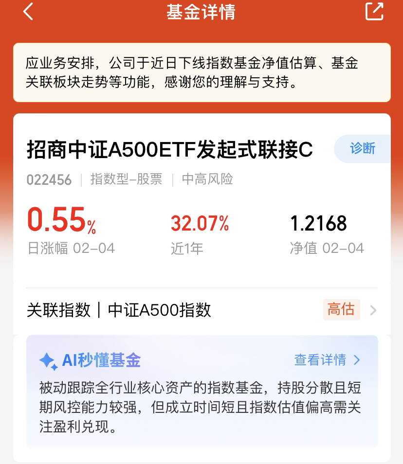 行情现在沪强深弱,节前资金都偏爱安全的低估值蓝筹。高估值成长板块只能震荡为主,$招商中证A500ETF发起式联接C(OTCFUND|022456)$昨天涨 0.55%,对比科技大跌、有色回调,年关到了,求稳才是核心,别冒进,稳稳收住收益就好。