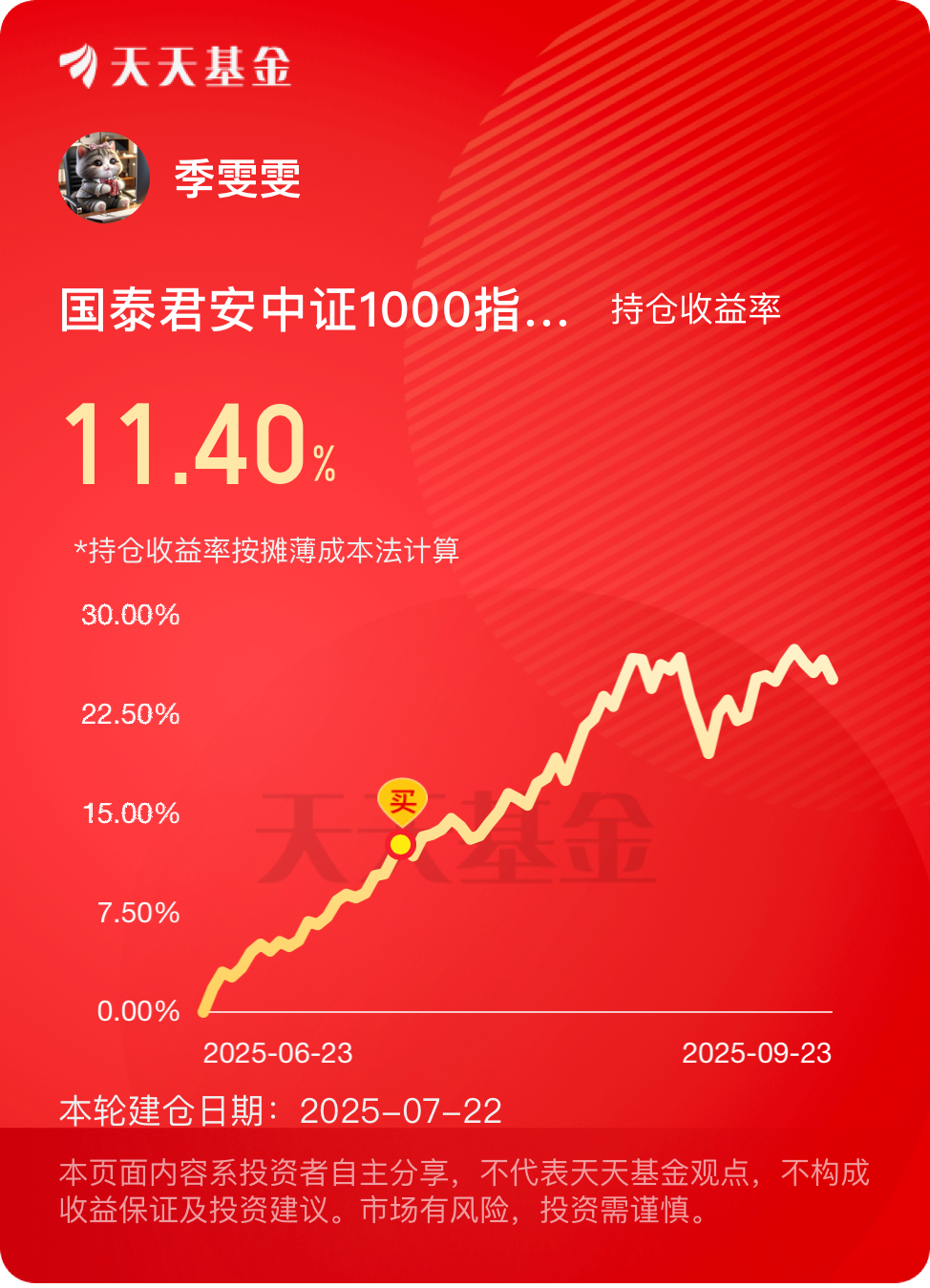 市场支撑强,震荡就是跟上的时候了 $国泰君安中证1000指数增强C$ #晒收益#