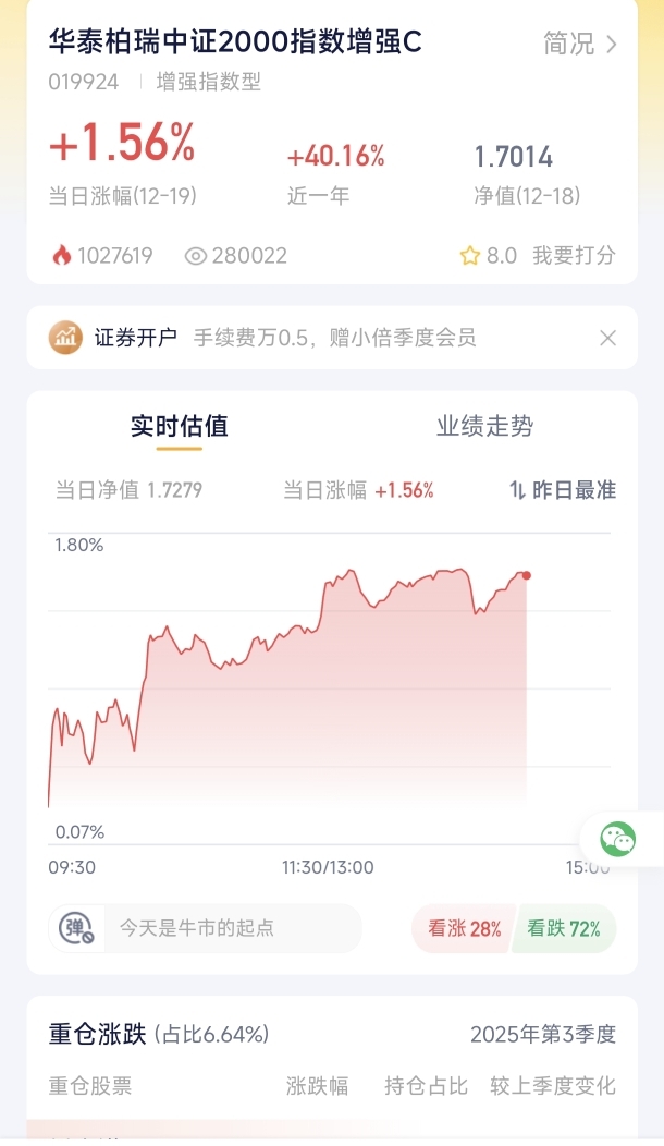 别光盯着沪深300了!今天中证2000涨得更欢,小盘股开始轮动补涨。政策面暖风频吹,小微企业的估值修复才刚开始。这时候选个靠谱的小盘指数增强产品很关键。华泰柏瑞的2000指增就挺能打——用量化模型在指数基础上“加点料”,过去一年跑赢同行最多。C类份额还不收申购费,短期想参与反弹、长期看好小微成长的都可以考虑。#存储巨头管理层:“好日子还在后头”#