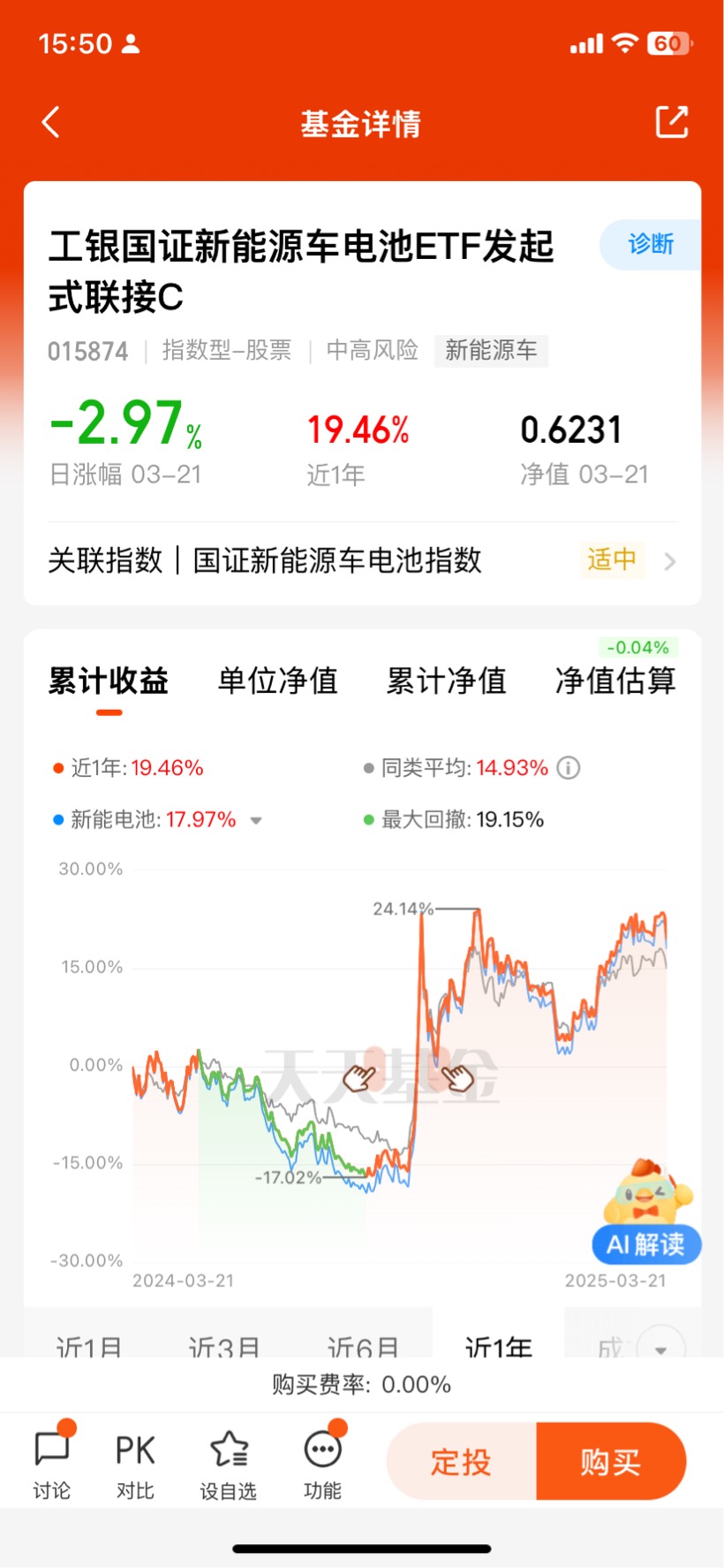 #锂电池前景# 今天市场震荡,布局新能源赛道投资机会,就选$工银国证新能源车电池ETF发起式联接C$ ,近六个月涨41.84%,跑赢同类基金31.47%的平均涨幅,在3044只同类基金中排名前列,表现非常优秀!