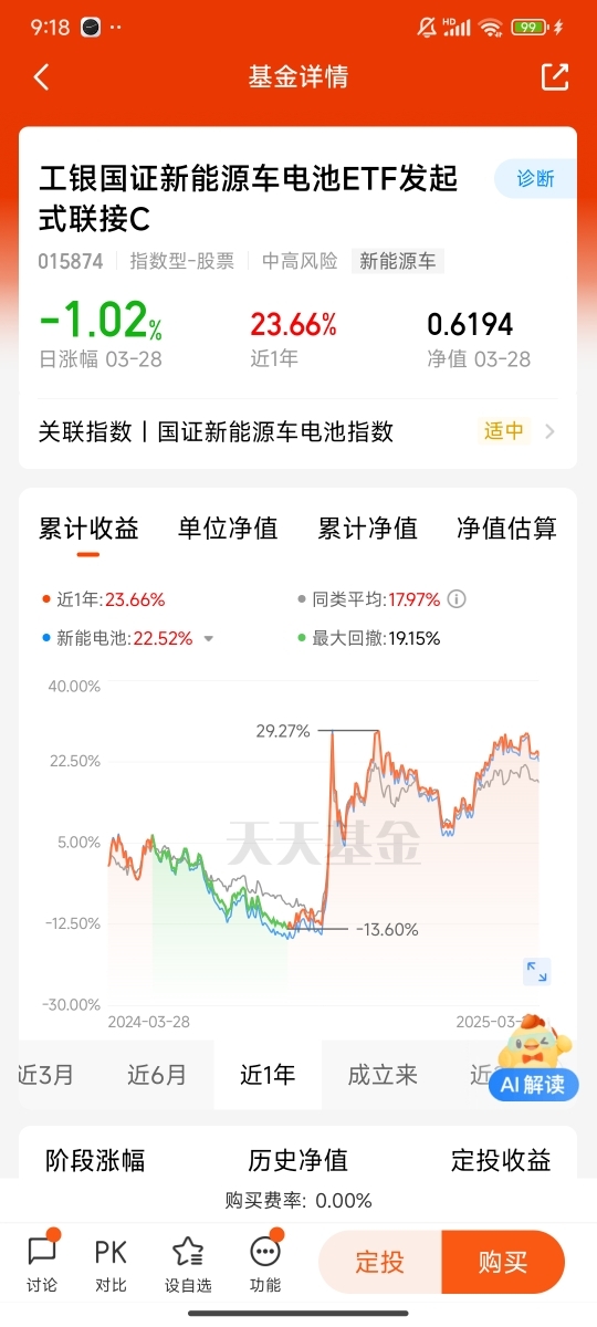 对于投资者而言,在当前市场疲软、该基金净值不断下跌的情况下,或许是逢低买入的好机会。过往市场经验表明,在市场恐慌性下跌或持续调整时,往往会出现较好的入场时机。虽然短期内市场仍可能存在波动,但只要对行业长期发展有信心,就可以利用市场调整的机会,逐步布局。当然,投资决策应结合自身的风险承受能力和投资目标,同时密切关注市场动向,及时调整投资策略。若后续市场成交量能有效放大,且政策面持续释放利好,工银国证新能源车电池ETF发起式联接C有望迎来估值修复和业绩增长的双击行情。@工银瑞信基金 $工银国证新能源车电池ETF发起式联接C$