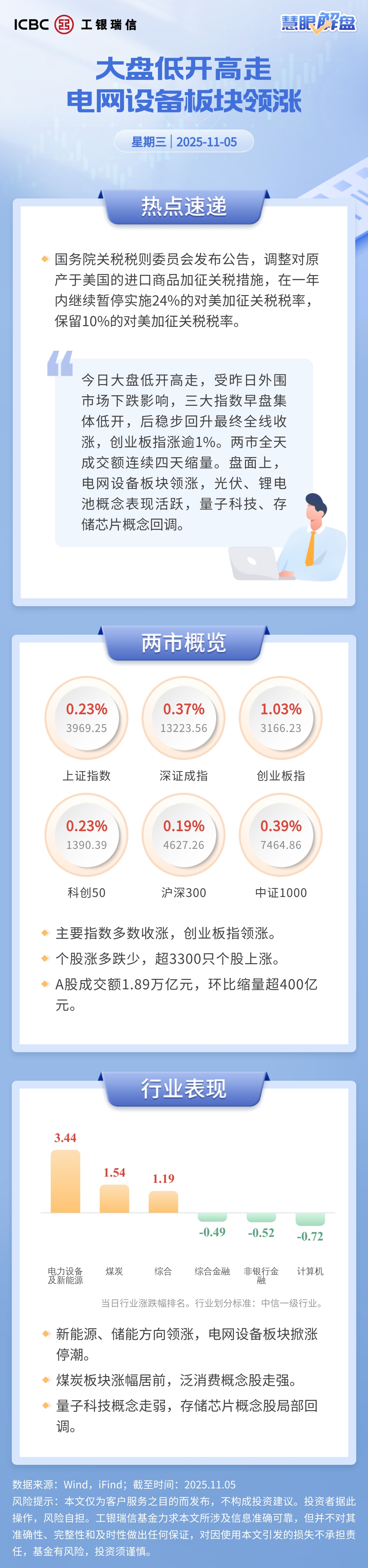【慧眼解盘】大盘低开高走 电网设备板块领涨