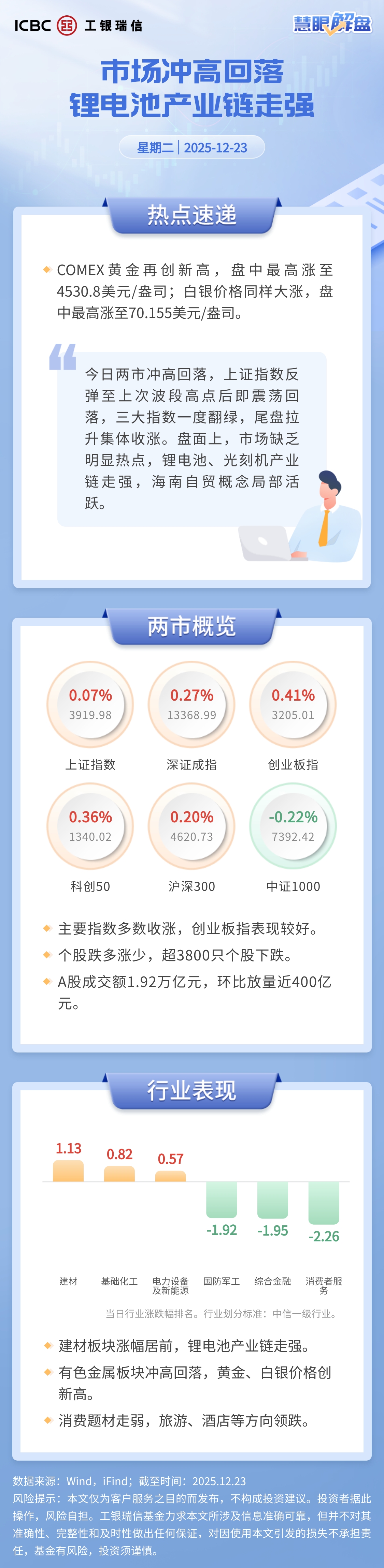 【慧眼解盘】市场冲高回落 锂电池产业链走强