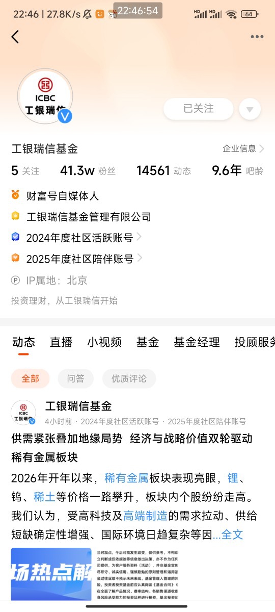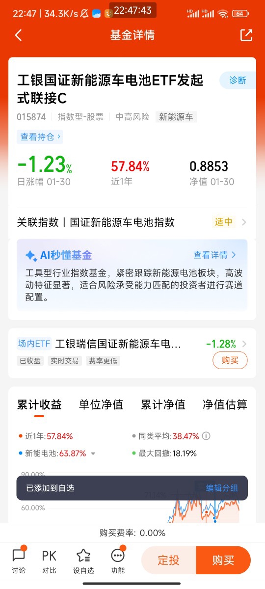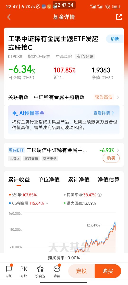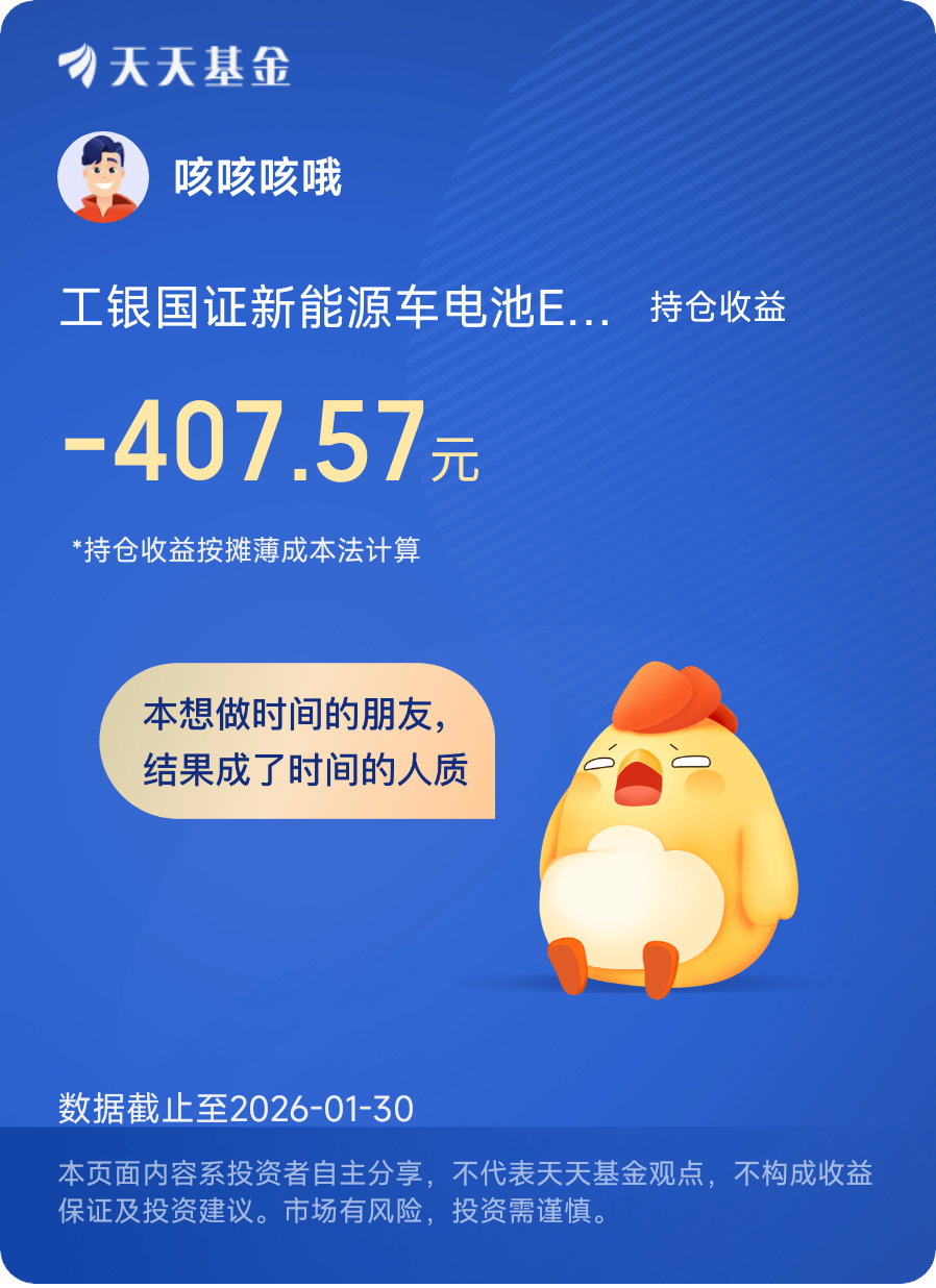 当然,投资没有稳赚不赔的神话,稀贵金属短期涨幅过大可能引发技术性回调,美联储降息不及预期、地缘冲突缓和等因素也可能带来波动风险。但对长期投资者而言,这些波动正是布局的良机。我计划在2026年采用“分批建仓+定投加仓”的策略,将工银国证新能源车电池ETF发起式联接C作为组合中的进攻型资产,搭配纯债基金平衡风险,在稀贵金属的结构性牛市中分享产业成长红利。