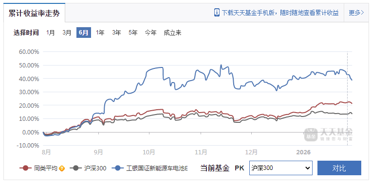 基金历史业绩表现较好但近期波动较大。截至2026年1月,工银国证新能源车电池ETF发起式联接C近一年净值增长率达57.84%,近六个月涨幅为38.54%,展现出较强的上涨动能。然而,基金近期表现有所波动,近三月涨幅为-5.22%,表明在市场调整阶段基金波动性较大。