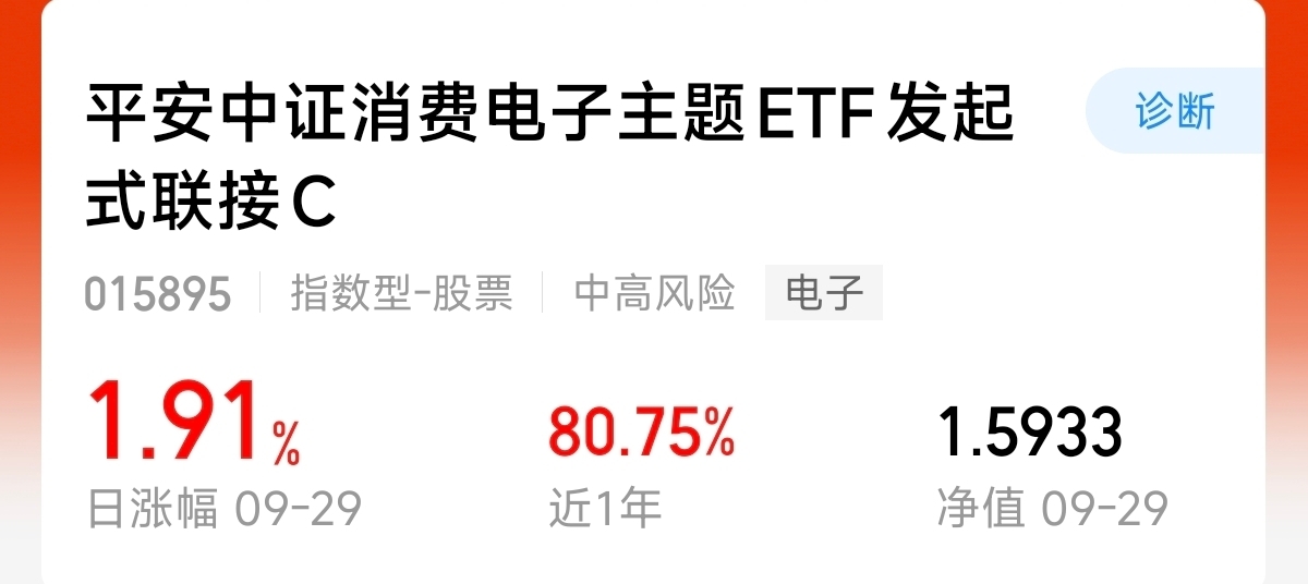 $平安中证消费电子主题ETF联接C$今天涨了1.9