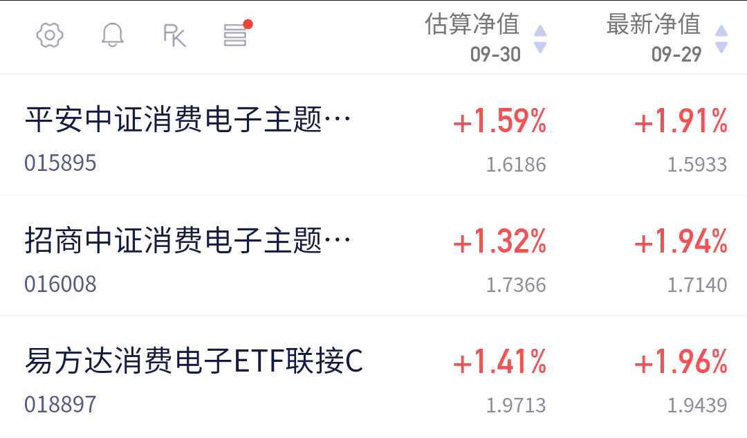 $平安中证消费电子主题ETF发起式联接C$ 估值涨1.59%挺不错了
