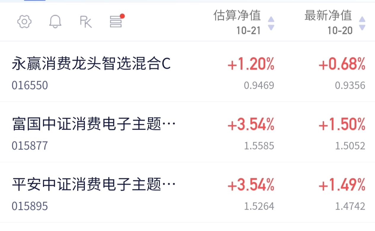 我关注的 $平安中证消费电子主题ETF发起式联接C$ 今天预计涨3.54%,真的不错的呀